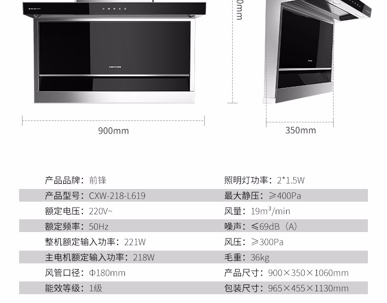前鋒平板雙吸油煙機(jī)L619