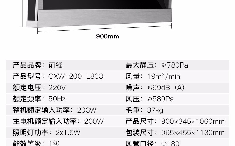前鋒平板雙吸油煙機L803