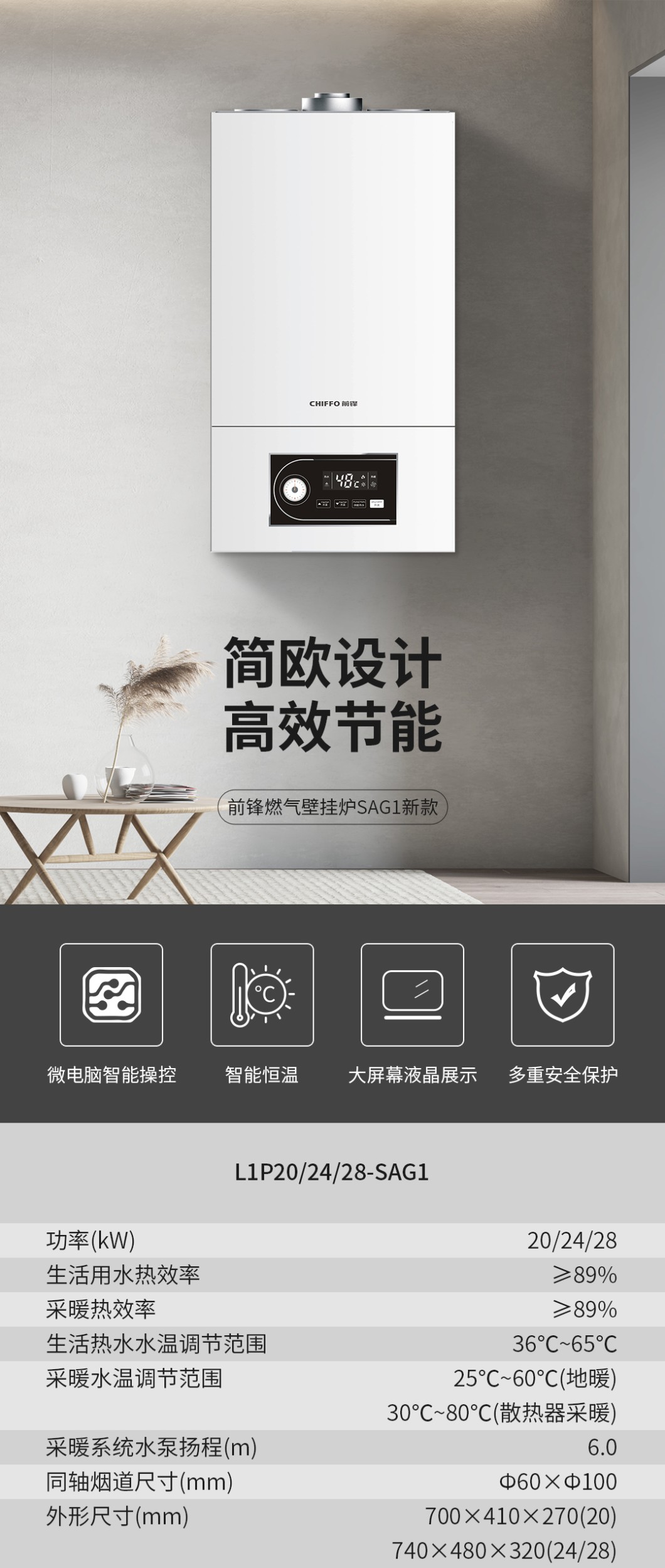 前鋒智能燃氣采暖熱水壁掛爐SAG1