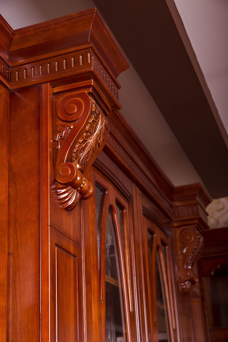 精湛的雕花,在紅潤的漆面下閃爍著新古典注意的莊重典雅,恢宏的氣勢彰顯著