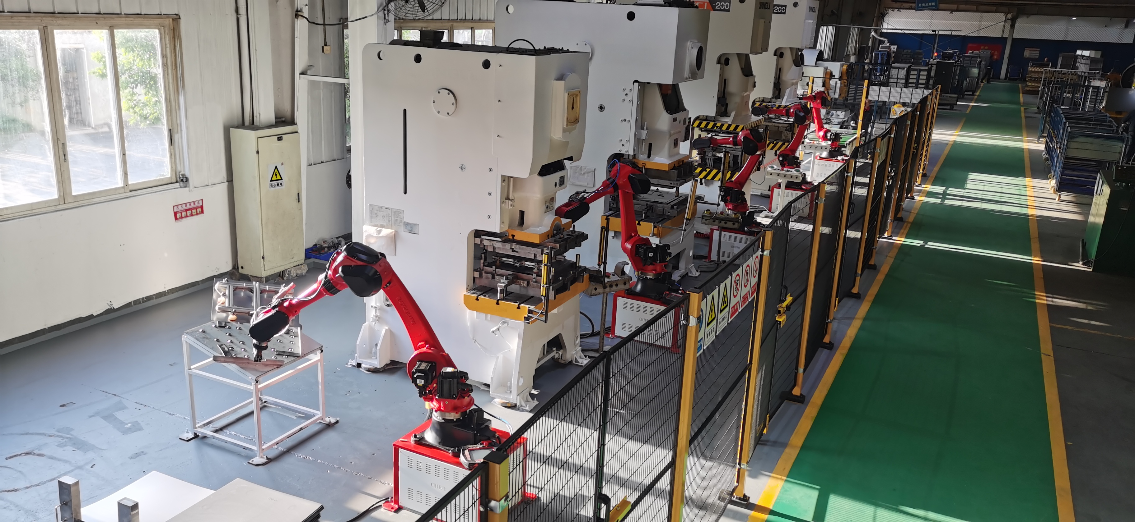 前鋒全自動沖壓線,實現(xiàn)無人化操作精準控制,主要用于熱水器下外殼零件生產,能實現(xiàn):